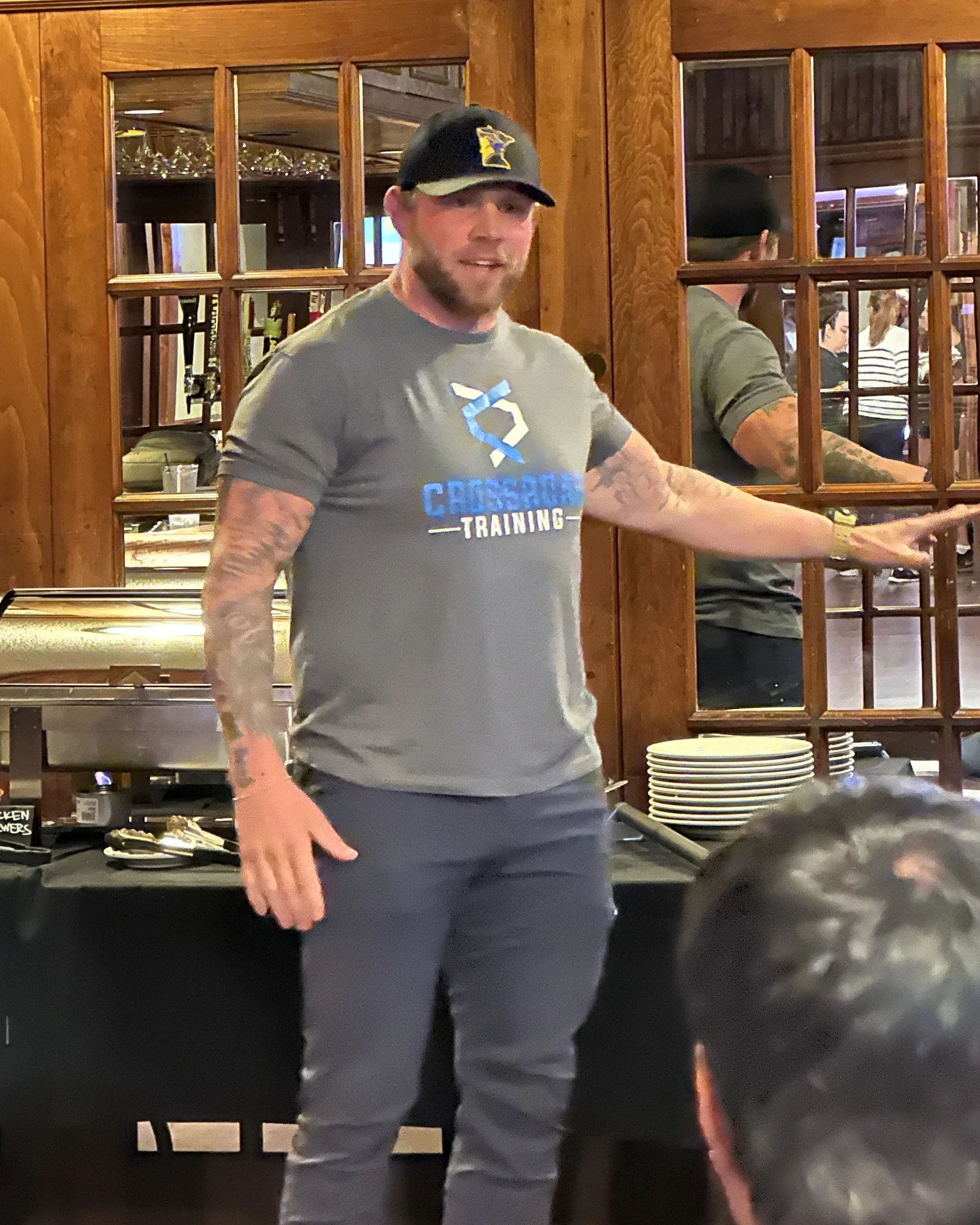 On Wednesday evening, our Associates gathered at Gabe’s Bar & Kitchen in St. Paul for another one of our Dinner Symposiums, this time focused on strengthening both body and mind. Our guest speaker, Ben Janike owner of Crossroads Training, brought an energy and insight that hit home for every man in the room.