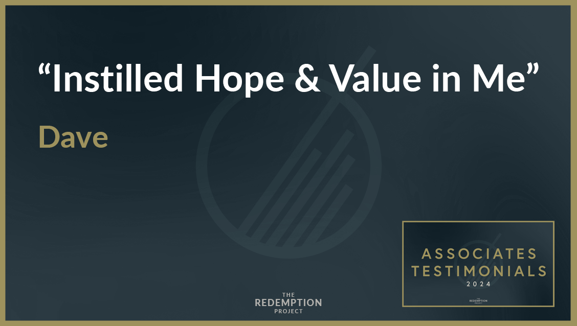 Each of our Associates has their own unique journey of redemption, from incarceration, to the realization that they needed to change, to discovering and believing in the principles of virtues taught by The Redemption Project, and finding hope for the future.